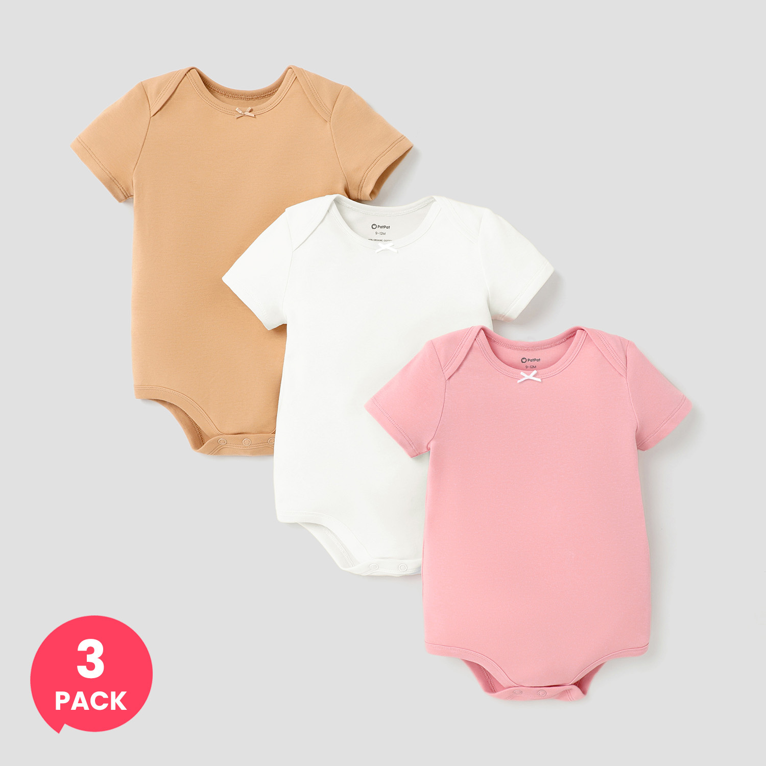 Key Features:* Product features: 3-piece bodysuit set. * Fabric characteristics: Moderate. * Piece of product: Set of 3. * Neckline: Regular. * Sleeves: Short sleeves. * Style: Basic, with stylish design. * Fit: Moderate. * Length: Regular. * Source of goods: Imported. * Supplier: PatPat.